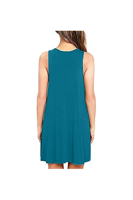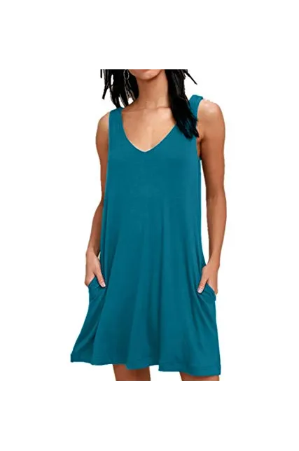 - Features: Casual Style, Round-Neck, Two Side Pockets, Sleeveless, Short Length, Not lined, Tank dress, Loose, Soft and Stretchy. Fit Occasion: Casual/Beach/Party/Work/Oustside/Usually. Put on a belt and it would look great.