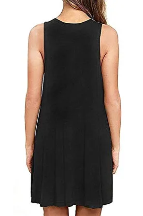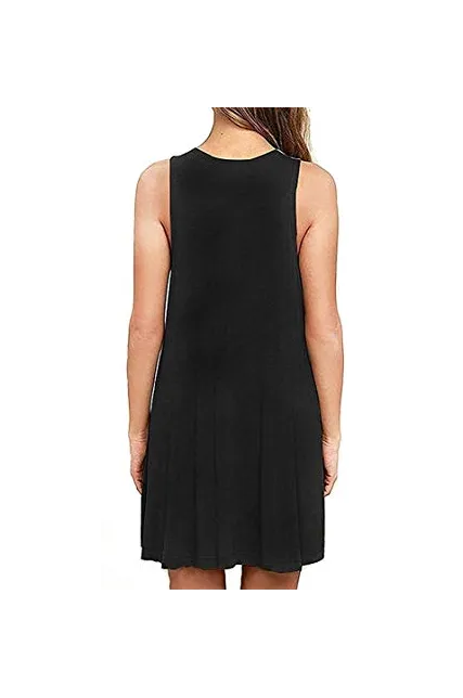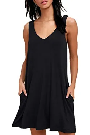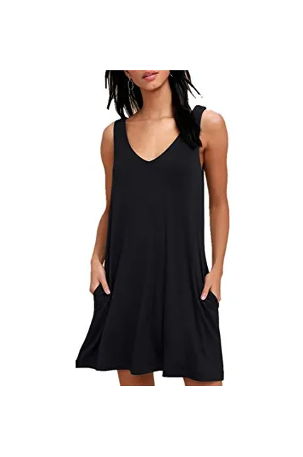 - Features: Casual Style, Round-Neck, Two Side Pockets, Sleeveless, Short Length, Not lined, Tank dress, Loose, Soft and Stretchy. Fit Occasion: Casual/Beach/Party/Work/Oustside/Usually. Put on a belt and it would look great.
