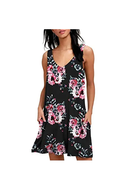 - Features: Casual Style, Round-Neck, Two Side Pockets, Sleeveless, Short Length, Not lined, Tank dress, Loose, Soft and Stretchy. Fit Occasion: Casual/Beach/Party/Work/Oustside/Usually. Put on a belt and it would look great.