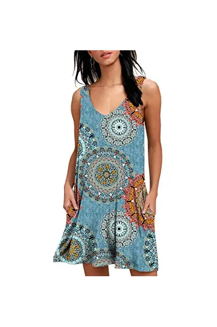 - Features: Casual Style, Round-Neck, Two Side Pockets, Sleeveless, Short Length, Not lined, Tank dress, Loose, Soft and Stretchy. Fit Occasion: Casual/Beach/Party/Work/Oustside/Usually. Put on a belt and it would look great.