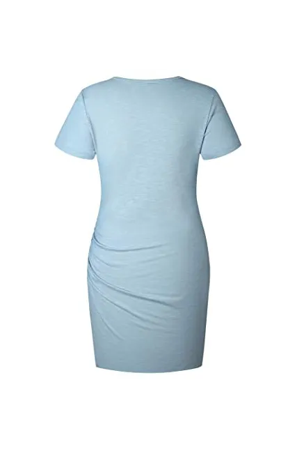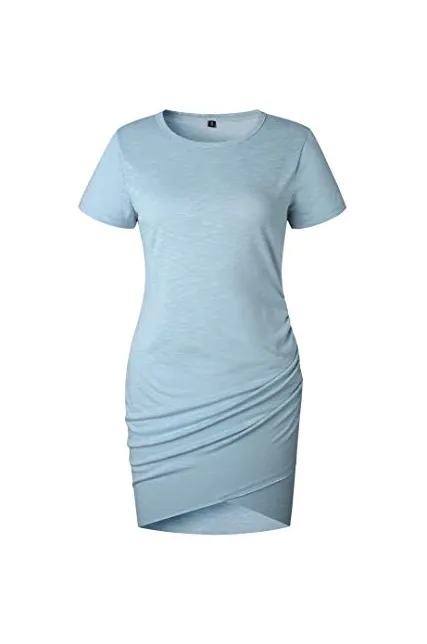 BTFBM Women’s 2019 Casual Crew Neck Ruched Stretchy Bodycon T Shirt Short Mini Dress