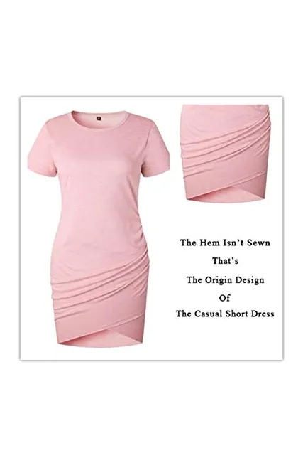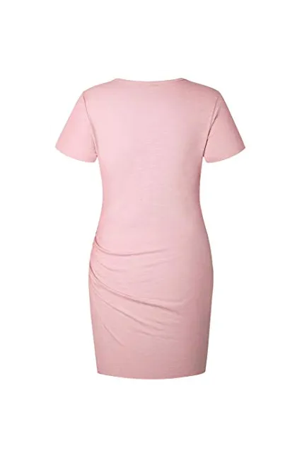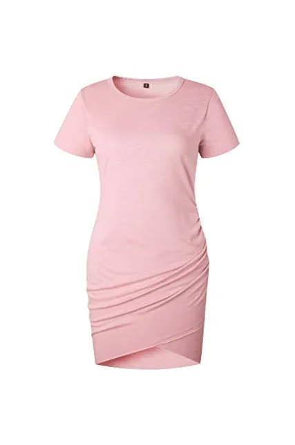 BTFBM Women’s 2019 Casual Crew Neck Ruched Stretchy Bodycon T Shirt Short Mini Dress