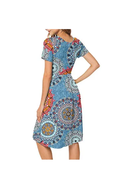 DB MOON Women's Summer Casual Tshirt Dresses Short Sleeve Empire Waist Swing Dress with Pockets