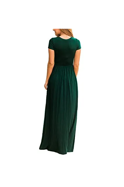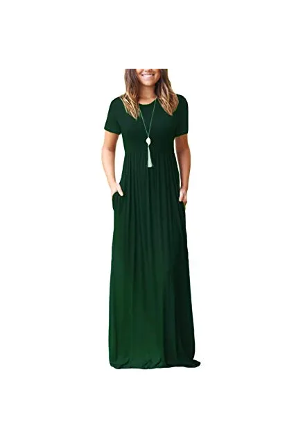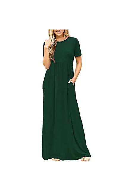 - Features: Casual Style,Two Side Pockets,Short Sleeves,Round Neck,Floor Length,Elastic at Waist,Not lined,Maxi Dresses