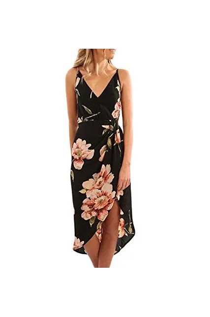 - Women Deep V Neck Strap Sexy Split Beach Midi Dress