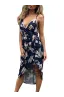 - Tropical floral print,wrap v neck,spaghetti staps,sleeveless