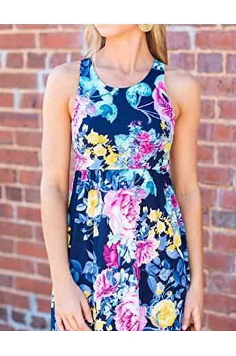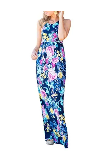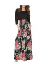 DUNEA Women's Maxi Dress Floral Printed Autumn 3/4 Sleeve Casual Tunic Long Maxi Dress