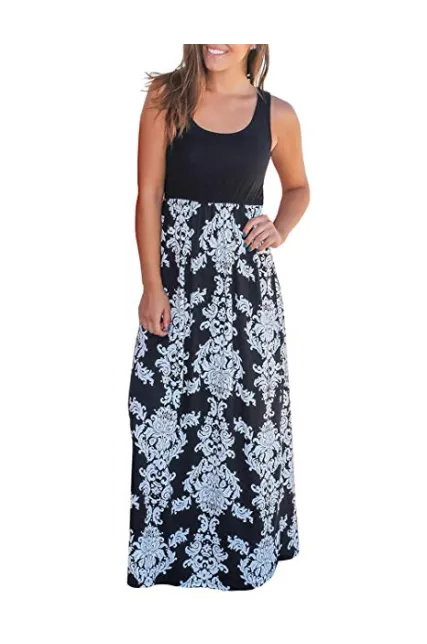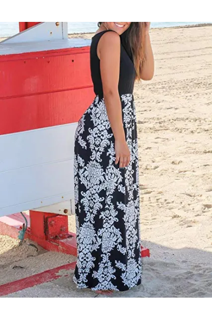 - Features: solid wrap top with comfortable sleeveless and long flowy skirt, elastic in the waist to make a comfortable fit. You can throw on a jacket easily when it's too chilly in the fall. Great floral maxi dress for birthday party and bridesmaid.