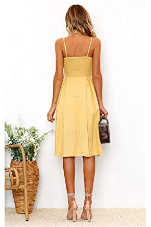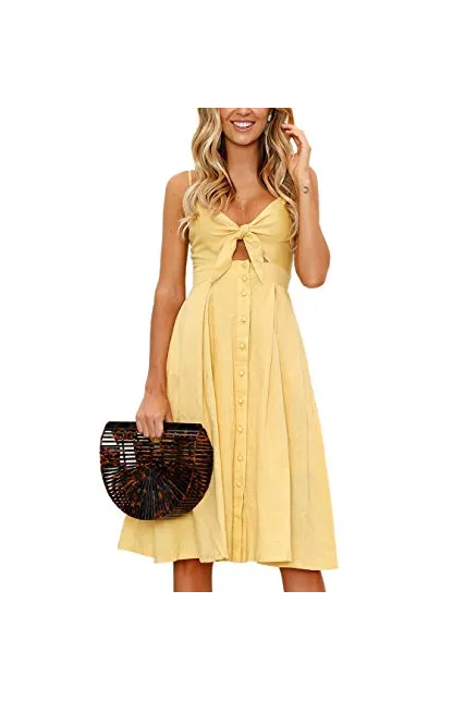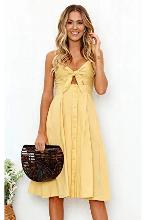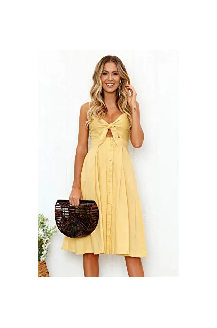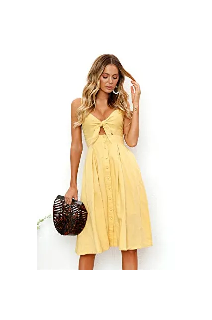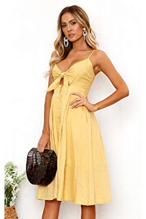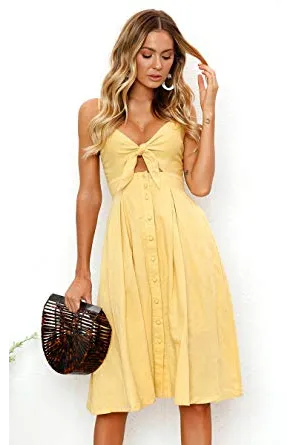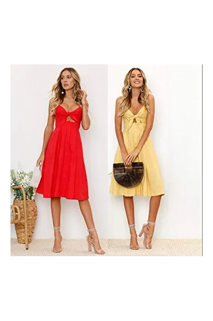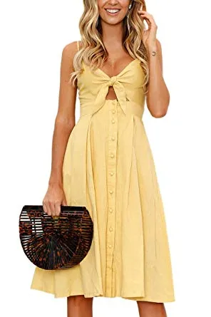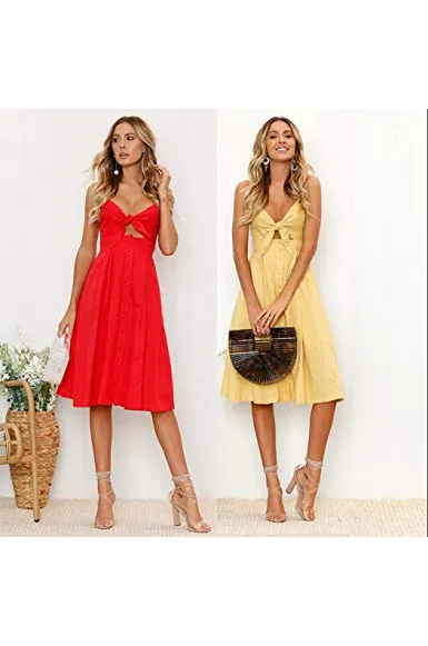- Design: V Neck, Tie Front, Spaghetti Strap, Open Back, A-line Style, Button Down Design, Midi Dress. Makes you elegant and shining when you wearing it.