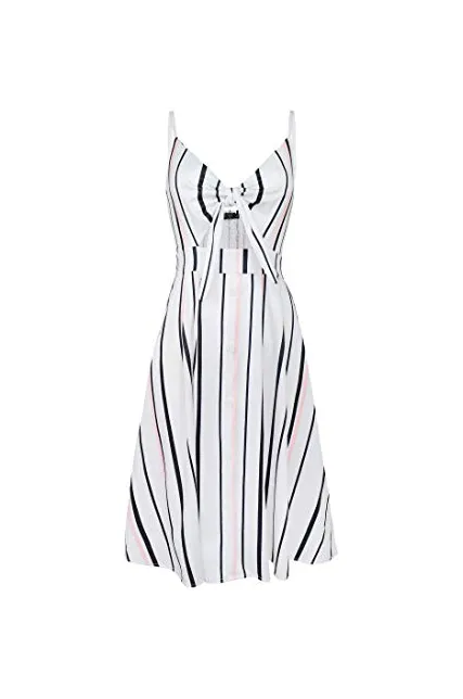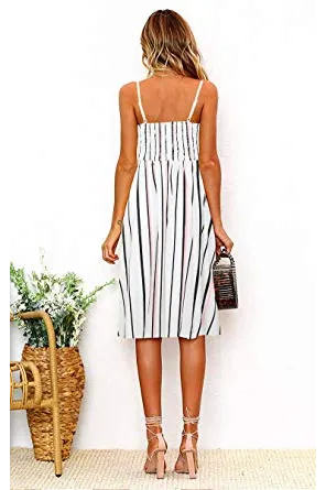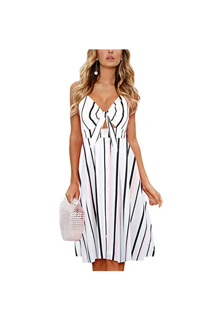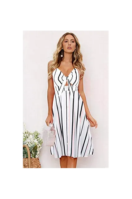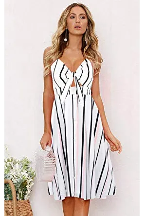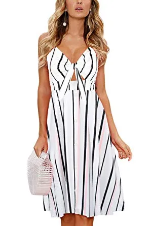 - Design: V Neck, Tie Front, Spaghetti Strap, Open Back, A-line Style, Button Down Design, Midi Dress. Makes you elegant and shining when you wearing it.