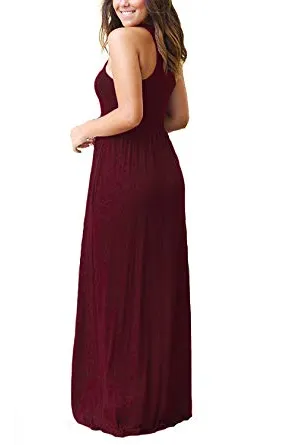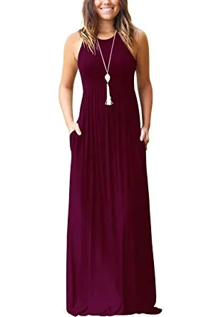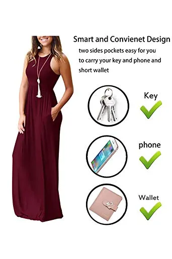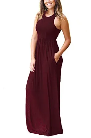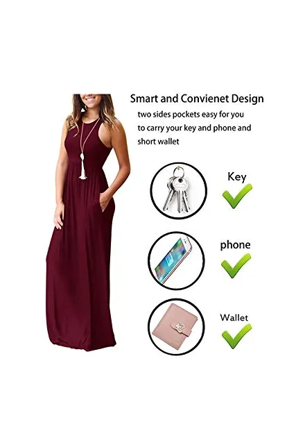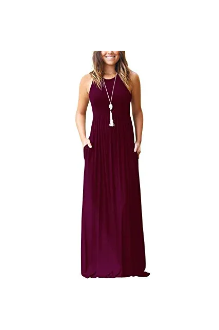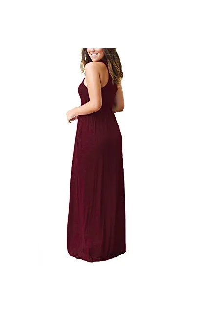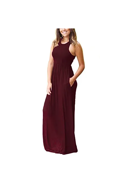 - Features:Casual Style,Elegant,Sleeveless,Rounded Neckline,Racerback,High Wastied,Two Side Pockets,Long Floor Length,Solid Dress,Slim Fit