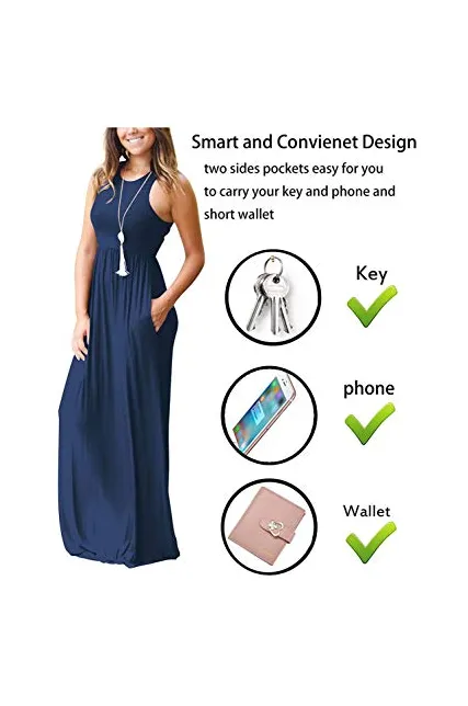 - Features:Casual Style,Elegant,Sleeveless,Rounded Neckline,Racerback,High Wastied,Two Side Pockets,Long Floor Length,Solid Dress,Slim Fit