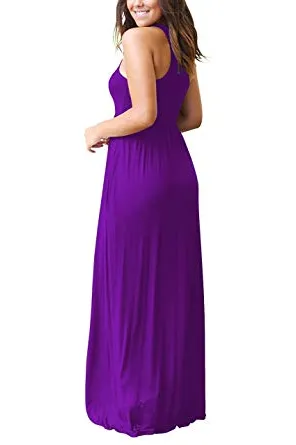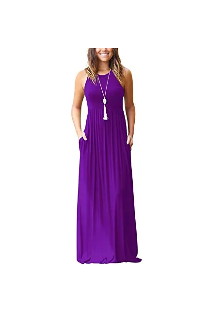 - Features:Casual Style,Elegant,Sleeveless,Rounded Neckline,Racerback,High Wastied,Two Side Pockets,Long Floor Length,Solid Dress,Slim Fit