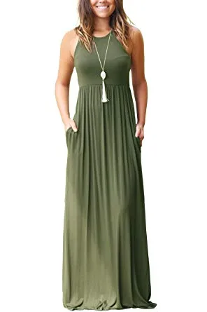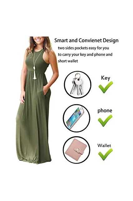 - Features:Casual Style,Elegant,Sleeveless,Rounded Neckline,Racerback,High Wastied,Two Side Pockets,Long Floor Length,Solid Dress,Slim Fit
