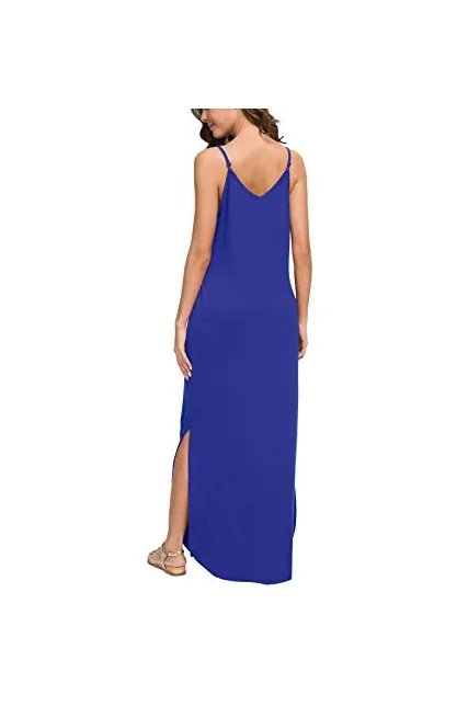 GRECERELLE Women's Summer Casual Loose Dress Beach Cover Up Long Cami Maxi Dresses with Pocket