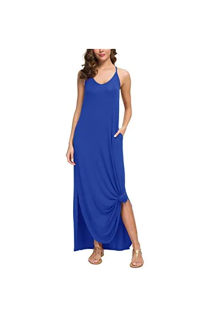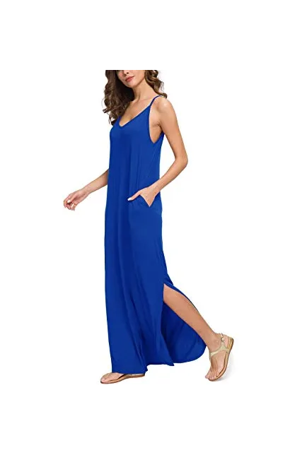 GRECERELLE Women's Summer Casual Loose Dress Beach Cover Up Long Cami Maxi Dresses with Pocket