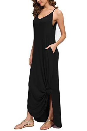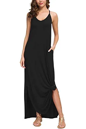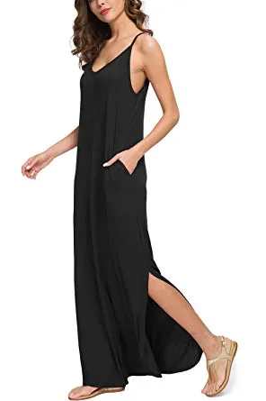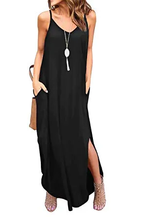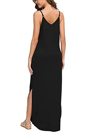 GRECERELLE Women's Summer Casual Loose Dress Beach Cover Up Long Cami Maxi Dresses with Pocket
