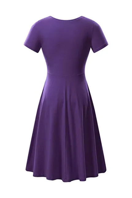 - Features short sleeves,round neck,flare skirt bottom and various colors