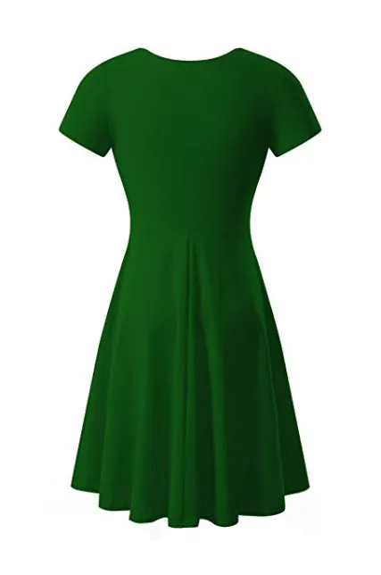 - Features short sleeves,round neck,flare skirt bottom and various colors