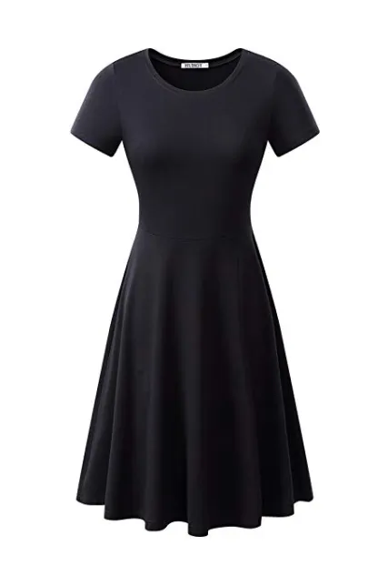 - Women Round Neck Short Sleeve Flare Midi Dress,Perfect for Spring,Summer and Autumn