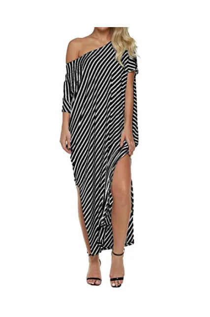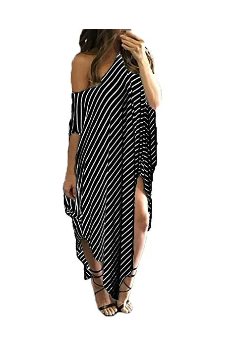 - ✿【Features】--1.Short Sleeve/Batwing Sleeve, Split Stripe Kaftan Dress, Off Shoulder/One Shoulder/Cold Shoulder ,O-neck and Asymmetric, Irregular Long Maxi Dress,Summer Beach Dress,Party Evening Long Maxi Dress, Loose Oversized Plus Size Dresses,Stripped maxi dresses for women,Bikini Cover up Beach Dress. 2,It's Fashionable and Charming; Sexy Striped Long Dress Kaftan Dress for Beach Party; Loose and Baggy style also as Maternity dress, A great sundress for mother gift.