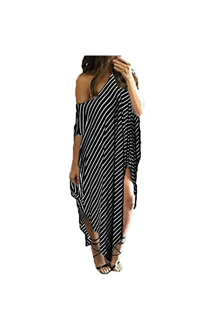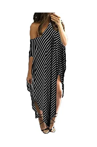 - ✿【Features】--1.Short Sleeve/Batwing Sleeve, Split Stripe Kaftan Dress, Off Shoulder/One Shoulder/Cold Shoulder ,O-neck and Asymmetric, Irregular Long Maxi Dress,Summer Beach Dress,Party Evening Long Maxi Dress, Loose Oversized Plus Size Dresses,Stripped maxi dresses for women,Bikini Cover up Beach Dress. 2,It's Fashionable and Charming; Sexy Striped Long Dress Kaftan Dress for Beach Party; Loose and Baggy style also as Maternity dress, A great sundress for mother gift.