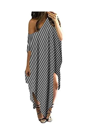 - ✿【Features】--1.Short Sleeve/Batwing Sleeve, Split Stripe Kaftan Dress, Off Shoulder/One Shoulder/Cold Shoulder ,O-neck and Asymmetric, Irregular Long Maxi Dress,Summer Beach Dress,Party Evening Long Maxi Dress, Loose Oversized Plus Size Dresses,Stripped maxi dresses for women,Bikini Cover up Beach Dress. 2,It's Fashionable and Charming; Sexy Striped Long Dress Kaftan Dress for Beach Party; Loose and Baggy style also as Maternity dress, A great sundress for mother gift.
