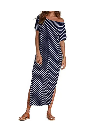 - ✿【Features】--1.Short Sleeve/Batwing Sleeve, Split Stripe Kaftan Dress, Off Shoulder/One Shoulder/Cold Shoulder ,O-neck and Asymmetric, Irregular Long Maxi Dress,Summer Beach Dress,Party Evening Long Maxi Dress, Loose Oversized Plus Size Dresses,Stripped maxi dresses for women,Bikini Cover up Beach Dress. 2,It's Fashionable and Charming; Sexy Striped Long Dress Kaftan Dress for Beach Party; Loose and Baggy style also as Maternity dress, A great sundress for mother gift.