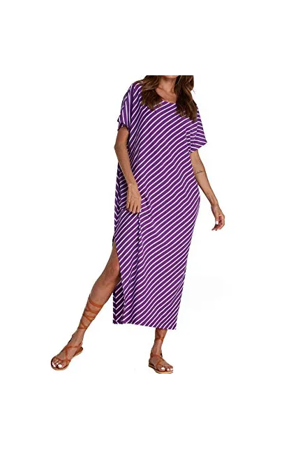 - ✿【Features】: 1.Material:95%Polyester +5%Spandex. Super Soft Comfortable to Wear. 2. Short Sleeve/Batwing Sleeve , Split Stripe Kaftans ,Off /One Shoulder/Cold Shoulder ,O-neck,Asymmetric, Irregular Long Maxi Dress,Summer Beach Dress,Party Evening Long Maxi Dress, Loose Oversized Plus Size Dresses,Club Wear ,Beachdress,Bikini Cover up Beach Dress.It's Fashionable and Charming. 3.Sexy Striped Long Dress Kaftan Dress for Beach Party. You Can Pull it Down to make it Look more Like One Off shouler.