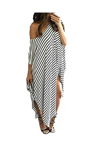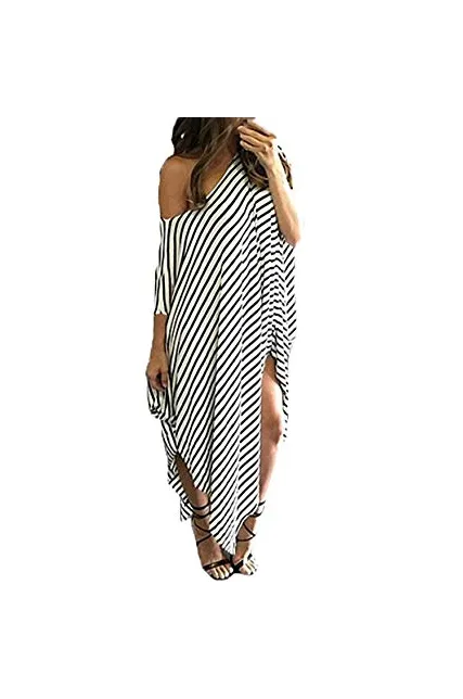 - ✿【Features】--1.Short Sleeve/Batwing Sleeve, Split Stripe Kaftan Dress, Off Shoulder/One Shoulder/Cold Shoulder ,O-neck and Asymmetric, Irregular Long Maxi Dress,Summer Beach Dress,Party Evening Long Maxi Dress, Loose Oversized Plus Size Dresses,Stripped maxi dresses for women,Bikini Cover up Beach Dress. 2,It's Fashionable and Charming; Sexy Striped Long Dress Kaftan Dress for Beach Party; Loose and Baggy style also as Maternity dress, A great sundress for mother gift.