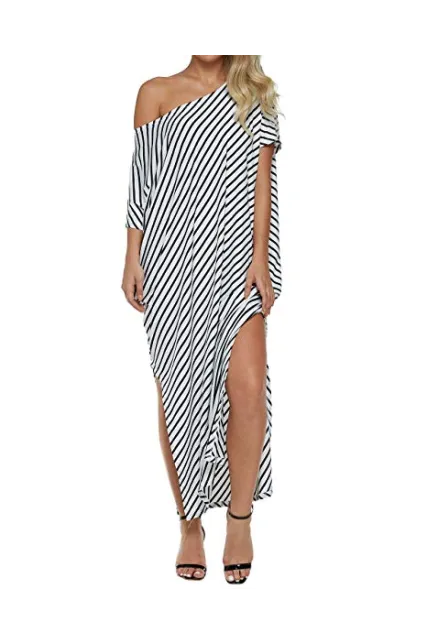 - ✿【Features】--1.Short Sleeve/Batwing Sleeve, Split Stripe Kaftan Dress, Off Shoulder/One Shoulder/Cold Shoulder ,O-neck and Asymmetric, Irregular Long Maxi Dress,Summer Beach Dress,Party Evening Long Maxi Dress, Loose Oversized Plus Size Dresses,Stripped maxi dresses for women,Bikini Cover up Beach Dress. 2,It's Fashionable and Charming; Sexy Striped Long Dress Kaftan Dress for Beach Party; Loose and Baggy style also as Maternity dress, A great sundress for mother gift.