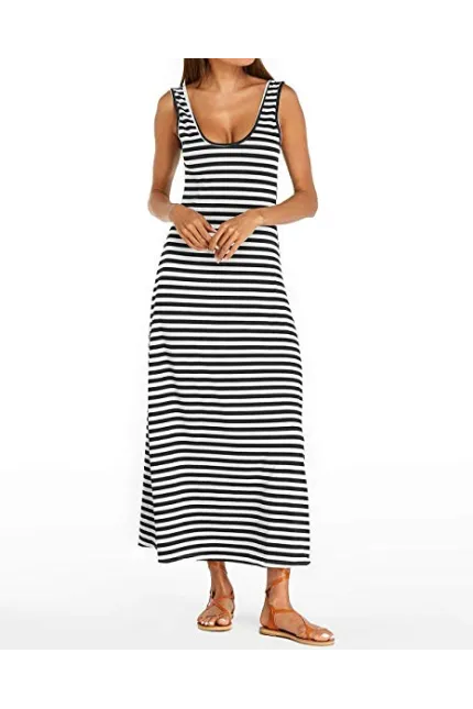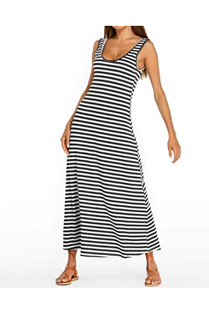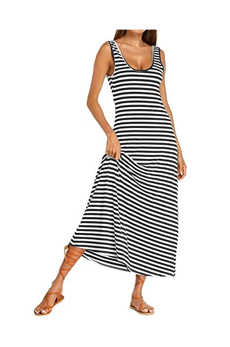 - 【Features】1,Classic Striped Long Dress, Strappy Dress for Summer, V neck/ Scoop Neck, Floor Length, Party Dress for Women. 2, Stretchy Material, Easy to Pull on, Party Evening Long Maxi Dress, Sexy Beachdress, Bikini Cover up Beach Dress. 3, Fantastic and Flattering, Sleeveless Maxi Dress, Loose Fit to Wear, Spaghetti Strap, Elegant and Fashion Club Dress.