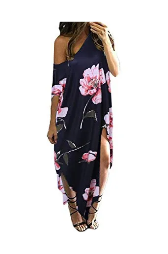 - ✿【Style】Bohemia style, Loose and Baggy Sundress, Irregular Design Side Split Floral Maxi Dress, Sexy Oversized Beach Cover up, Off shoulder/ One shoulder Long Dress.