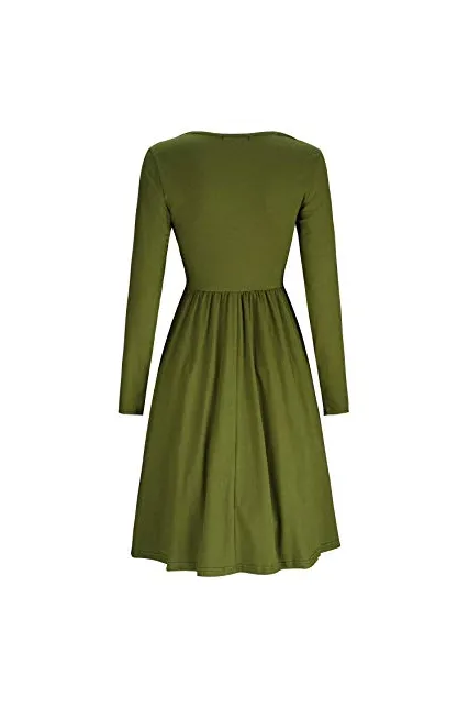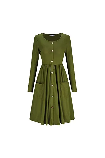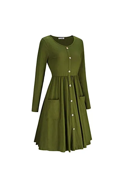 - Unique Design: Decorated with button, Casual style, Solid color, about knee length, A-line, with two big pockets