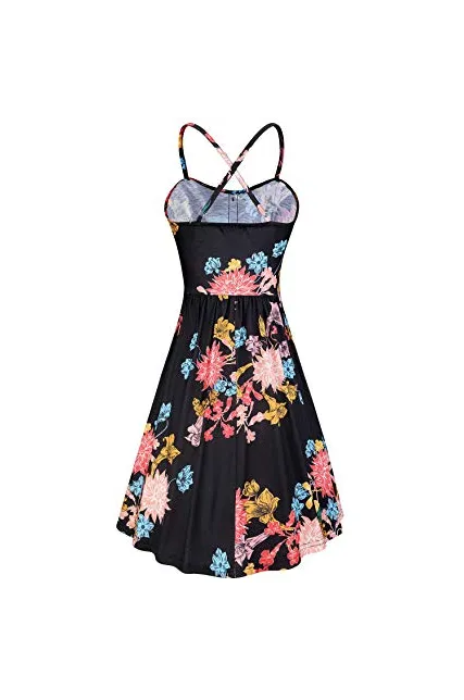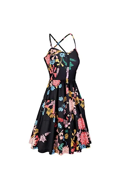 - Style: Sexy Backless, Bohemian Floral Print ,Round Neck, Backless, A Line, Spaghetti Strap, Mini Length, Button Down, With Pockets Swing Flowy Summer Beach Dresses.Simple and classy design, it is a necessity for every wardrobe. Features - Sleeveless/Adjustable Strappy/Slim Fit/Floral Print/Waistline/A-Line/Sundress/ With Pockets