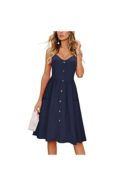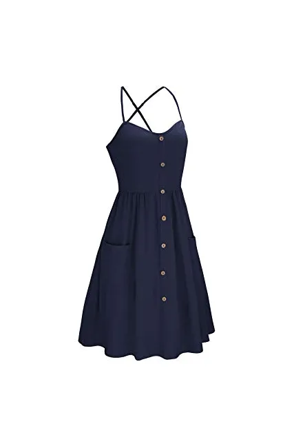 - Style: Sexy Backless, Bohemian Floral Print ,Round Neck, Backless, A Line, Spaghetti Strap, Mini Length, Button Down, With Pockets Swing Flowy Summer Beach Dresses.Simple and classy design, it is a necessity for every wardrobe
