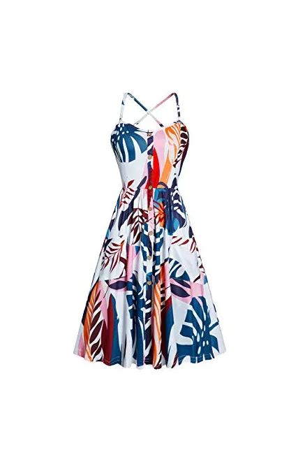 - Style: Sexy Backless, Bohemian Floral Print ,Round Neck, Backless, A Line, Spaghetti Strap, Mini Length, Button Down, With Pockets Swing Flowy Summer Beach Dresses.Simple and classy design, it is a necessity for every wardrobe. Features - Sleeveless/Adjustable Strappy/Slim Fit/Floral Print/Waistline/A-Line/Sundress/ With Pockets