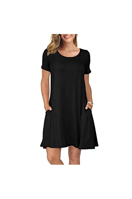 KORSIS Women's Summer Casual T Shirt Dresses Short Sleeve Swing Dress with Pockets