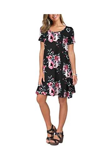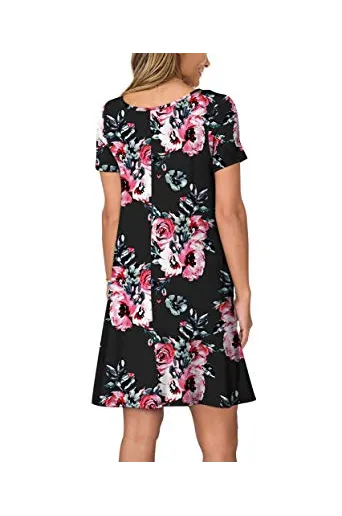 KORSIS Women's Summer Casual T Shirt Dresses Short Sleeve Swing Dress with Pockets