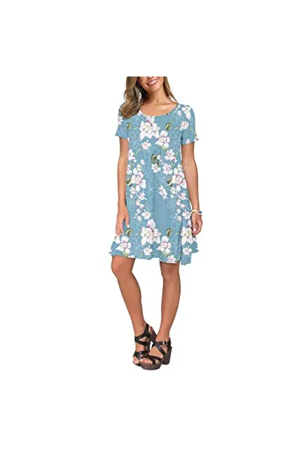 KORSIS Women's Summer Casual T Shirt Dresses Short Sleeve Swing Dress with Pockets
