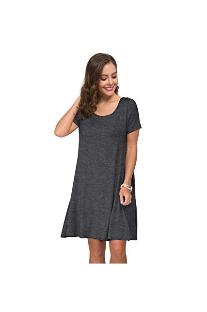 KORSIS Women's Summer Casual T Shirt Dresses Short Sleeve Swing Dress with Pockets