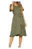 - Features:Casual Style,Stylish Flower Short Sleeve,Round neck,Plain(Soild) Color, Oblique ruffle hem