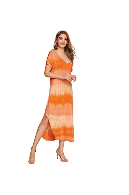 - Features: print, short sleeve, two sides split, with two pockets , v neck; Simple casual style, fit for everyday dressing, wear at home, travel, you can match with your pumps, heels, boot