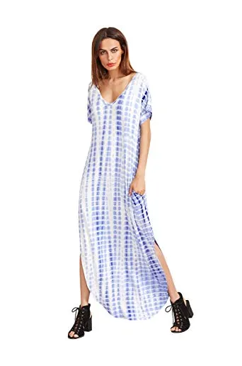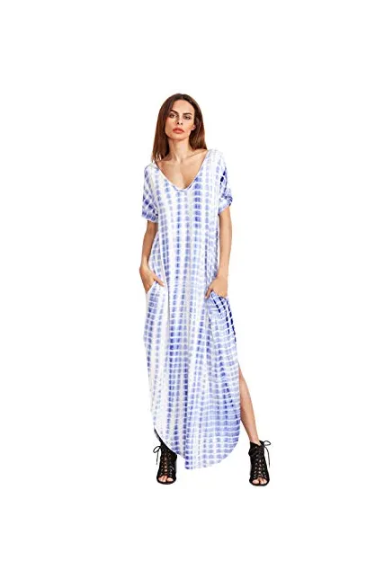 - Features: print, short sleeve, two sides split, with two pockets , v neck; Simple casual style, fit for everyday dressing, wear at home, travel, you can match with your pumps, heels, boot