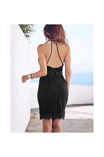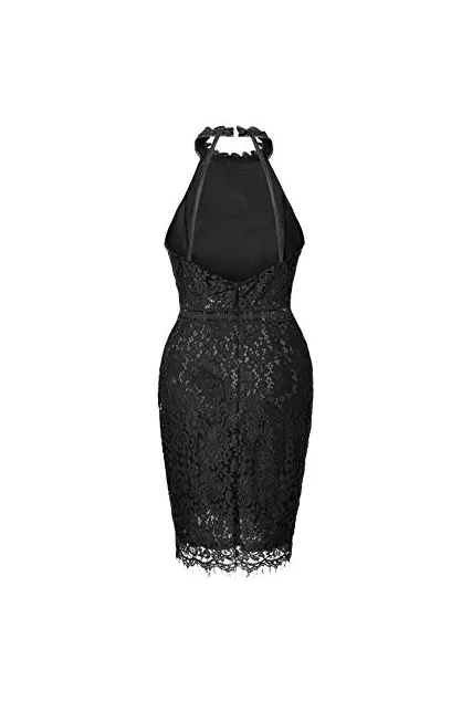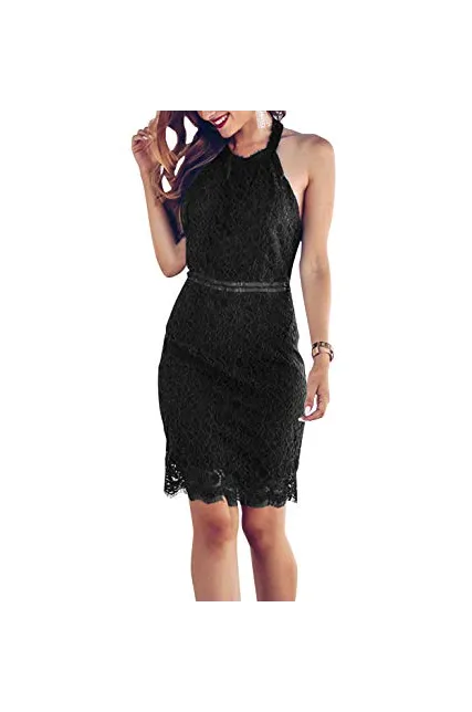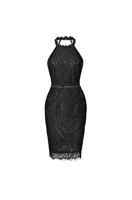 - Unique Design: Halter Neckline, Sleeveless, about knee length, invisible back zipper, peek-a-boo waist, scalloped eyelash lace hem, elegant lace sheath dress