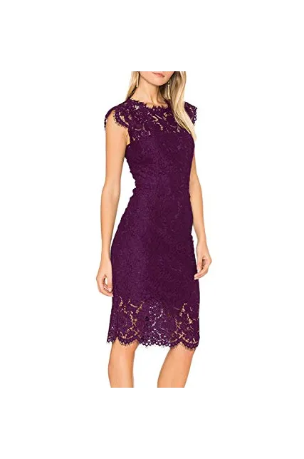 MEROKEETY Women's Sleeveless Lace Floral Elegant Cocktail Dress Crew Neck Knee Length for Party
