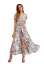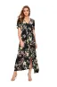 - A Line Buttons Up Flowy Split V-Neck, Short Sleeve,Floral Print,Maxi,Boho