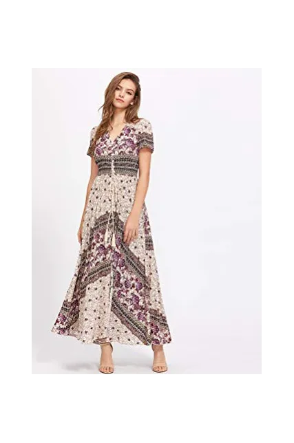 - V-Neck, Half Sleeve/ Short Sleeve,Floral Print