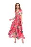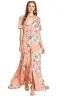 - A Line Buttons Up Flowy Split V-Neck, Short Sleeve,Floral Print,Maxi,Boho