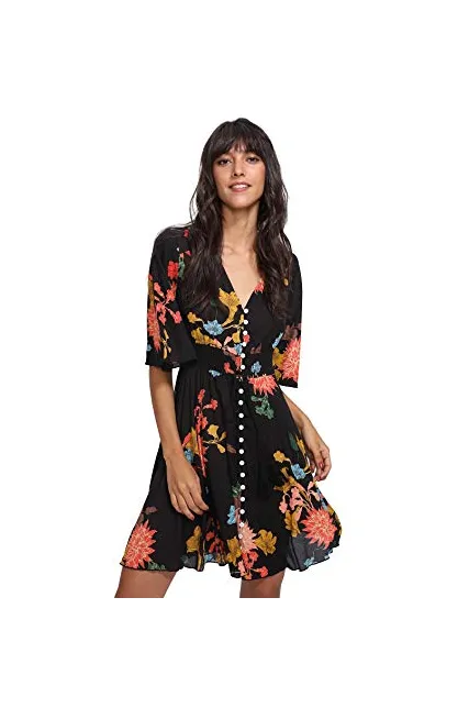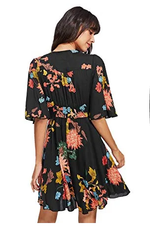 - V-Neck, Half Sleeve/ Short Sleeve,Floral Print